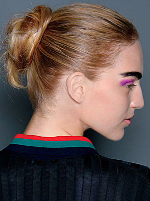 Το χτένισμα αυτό εντυπωσιάζει καταρχήν για τον επιμελώς ατημέλητο χαμηλό του κότσο, ωστόσο είναι η στέκα που κλέβει τις εντυπώσεις, η οποία έχει τοποθετηθεί με έναν εντελώς πρωτότυπο, αλλά άκρως ενδιαφέρον τρόπο!