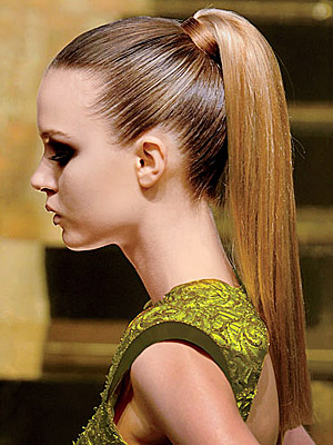 Αν έχετε ίσια μακριά μαλλιά θα σας είναι πολύ εύκολο να πετύχετε την συγκεκριμένη αλογοουρά, με την βοήθεια ενός σεσουάρ με πλατύ στόμιο. Τραβήξτε όλα τα μαλλιά προς τα πίσω, καθώς τα στεγνώνετε, και «δέστε» τα με ένα bungee (λαστιχάκι με δύο γαντζάκια στις άκρες του), με το οποίο μπορείτε να προσαρμόσετε καλύτερα το πόσο σφιχτά θα το δέσετε.