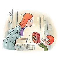 - Πίκολο! Άφησε αμέσως τη μοτοσυκλέτα, τον μαλώνει η μαμά. Δεν πρόκειται να την αγοράσουμε. Έχεις κάμποσα τέτοια παιχνίδια στο σπίτι. Δεν μπορούμε συνεχώς να ξοδεύουμε χρήματα!