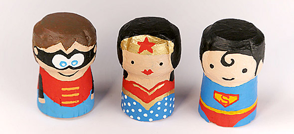 Με τον ίδιο τρόπο, όπως περιγράψαμε παραπάνω, μπορείτε να φτιάξετε τους αγαπημένους ή φανταστικούς σούπερ-ήρωες των παιδιών. Για το συγκεκριμένο project θα βοηθήσει αν βρείτε φελλούς με στρογγυλεμένες άκρες, π.χ. φελλούς από σαμπάνια.