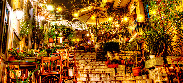 Η Πλάκα και τα Αναφιώτικα συνδυάζουν την πολυκοσμία και τον τουρισμό, αλλά και την ησυχία και την ρομαντζάδα, καθώς ανηφορίζετε στα δαιδαλώδη στενά. Ό,τι πρέπει, δηλαδή, για βραδινή βόλτα με τον σύντροφό σας! Ξεκινήστε από τον γεμάτο τουρίστες πεζόδρομο της Κυδαθηναίων, στριμωχτείτε ανάμεσα στα πλήθη που κάθονται στα σκαλάκια έξω από το Γιασεμί και ανηφορίστε στα μισοσκότεινα δρομάκια προς τα Αναφιώτικα, στις κρυφές μίνι πλατείες όπως αυτή που σχηματίζεται ανάμεσα στις οδούς Θέσπιδος, Ραγκαβά και Επιμενίδου. Πρόκειται, ίσως, για το πιο ρομαντικό και σαφώς ένα από τα πιο ήσυχα σημεία της Αθήνας.