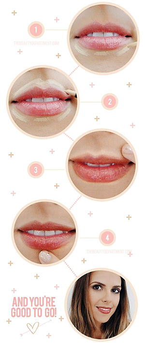 Απλώστε γύρω από τα χείλη σας ένα ανοιχτόχρωμο concealer! Ακόμα κι αν δεν τα βάψετε μετά και απλώσετε μόνο λίγο gloss θα δείχνουν πολύ πιο ζουμερά!