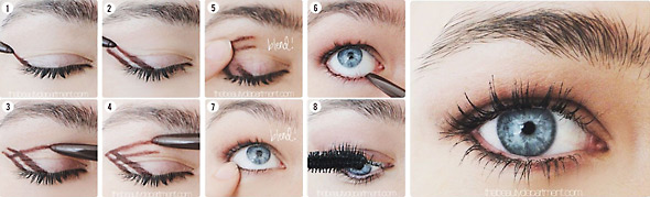 Ακολουθήστε τα παραπάνω βήματα και σχεδιάστε με το μολύβι ένα «καρό» στο πάνω βλέφαρο. Στη συνέχεια, όπως δείχνει το βήμα 5, αναμείξτε τις γραμμές. «Περάστε» με το μολύβι και το κάτω βλέφαρο, «μουτζουρώστε» την γραμμή και εκεί με το δάχτυλο, απλώστε και λίγη μάσκαρα και... έτοιμες!