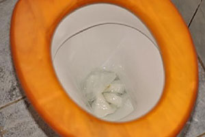 Αναμείξτε το απορρυπαντικό στο καυτό νερό και ρίξτε το με δύναμη μέσα στην λεκάνη!