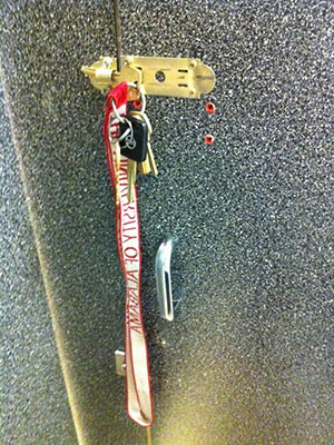 ...βάλτε στην τρύπα του σύρτη το κλειδί σας. Αν έχετε πάνω σας ένα λουκέτο τύπου καραμπίνερ, ακόμα καλύτερα!