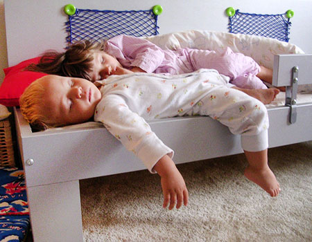 Εννοείται ότι ενώ δεν ξυπνά με τίποτα τις ημέρες που βιάζεστε ξυπνά από τα χαράματα τα Σαββατοκύριακα!