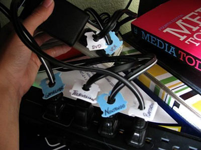 Τα καλώδια πίσω από την τηλεόραση σίγουρα δεν είναι σε καλύτερη κατάσταση από αυτά του υπολογιστή. Ξεχωρίστε τα εύκολα και γρήγορα με μικρές ετικέτες που να αναγράφουν την συσκευή που συνδέουν.