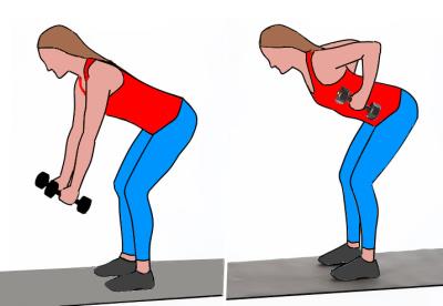 Πάρτε στα χέρια σας τα βαράκια (1-2 κιλά αρκούν για αρχάριους ασκούμενους). Καθίστε στο έδαφος με τρόπο που τα γόνατα και τα δάχτυλα των ποδιών να ακουμπούν κάτω. Λυγίστε το πάνω μέρος του σώματος μπροστά και τοποθετήστε τους αγκώνες στα πλάγια σε γωνία 90 μοιρών. Τώρα σπρώξτε τους αγκώνες πίσω, με προσοχή να βρίσκονται στο ίδιο ύψος. Νιώστε την πίεση στους τρικέφαλους και επιστρέψτε στην αρχική θέση. Επαναλάβετε 8-10 φορές.