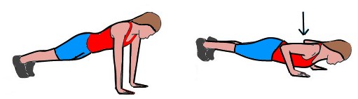 Πέστε στο έδαφος με τα χέρια κάτω από τους ώμους. Κρατήστε τους αγκώνες κοντά στο σώμα και στην συνέχεια προσπαθήστε να κατεβάσετε τον κορμό. Αν το βρίσκετε πολύ δύσκολο, τοποθετήστε παράλληλα τα γόνατα στο έδαφος και στηριχτείτε σε αυτά. Επαναλάβετε 10-15 φορές.