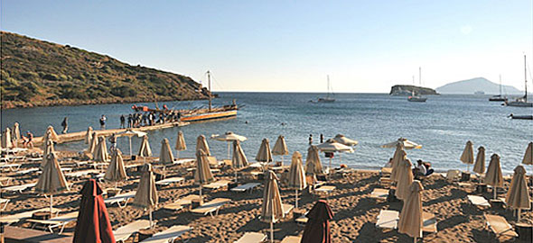 Παραλία με άμμο και πεντακάθαρα νερά, στην οργανωμένη πλαζ του Ξενοδοχείου Αιγαίον, όπου θα βρείτε και παιδότοπο.
