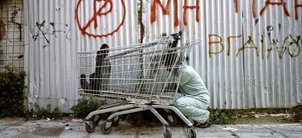 Τα καροτσάκια είναι συχνό θέαμα στους δρόμους της Αθήνας. Μετανάστες και Έλληνες ψάχνουν τους κάδους για σίδερο και μεταλλικά υλικά, τα οποία τα μεταπωλούν σε σιδεράδες για να βγάλουν ένα μεροκάματο.