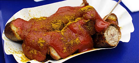 Πικάντικο και γνωστό στον κόσμο που ταξιδεύει, το currywurst, το βρίσκεις στο Βερολίνο και σίγουρα δεν είναι ένα απλό σάντουιτς με λουκάνικο. Από το 1949, αποτελείται από λουκάνικο κομμένο σε κομμάτια, με κέτσαπ, κάρυ και πάπρικα, σερβιρισμένο με ψωμάκια και πατάτες και προέκυψε από ένα λάθος μιας πλανόδιας πωλήτριας, που έριξε κατά λάθος σκόνη κάρυ μέσα στην κέτσαπ. Παραδοσιακό και κοσμοπολίτικο, συνιστάται μετά από έντονο ξενύχτι. Θα το βρείτε σε πολλά μέρη, αλλά σημειώστε τα το Krasselts Imbiss (22 Steglitzer Damm, www.krasselts-berlin.de) και Konnopke's Imbiss (44B Shönhauser Allee, www.konnopke-imbiss.de).