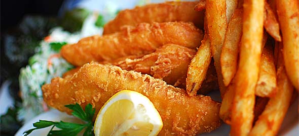 Οι Άγγλοι δεν φημίζονται για την κουζίνα τους, τα fish& chips όμως είναι γνωστά σε όλο τον κόσμο. Πρόκειται για τηγανητό φιλέτο ψαριού –συνήθως μπακαλιάρου- βουτηγμένου σε παχύρρευστο κουρκούτι, το οποίο συνοδεύεται από τηγανητές πατάτες και σερβίρεται σε χάρτινα κουτιά με ξύλινα πηρουνάκια. Ένα νόστιμο φαγητό, αγαπημένο στην εργατική και μεσαία τάξη, υπάρχει παντού στους δρόμους του Λονδίνου αλλά και σε όλη τη Μεγάλη Βρετανία. Γνωστό από το 1914 και ίσως το καλύτερο είναι το GoldenHinde (73, MarylebonLane).