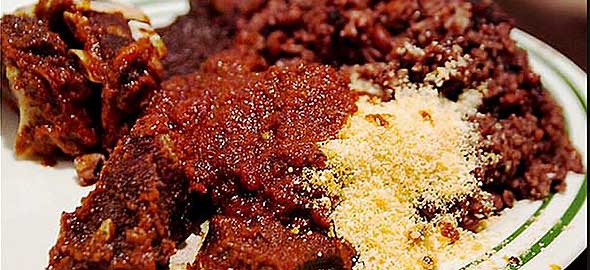 Το πιάτο αυτό ονομάζεται waakye. Αποτελείται από ρύζι μαγειρεμένο με φασόλια. Φαίνεται νόστιμο!