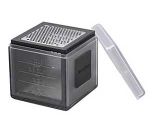 Ένας τρίφτης διαφορετικός από τους υπόλοιπους, ιδανικός για καρότα, τυρί και σοκολάτα. Η διαγράμμιση στην εξωτερική πλευρά του δοχείου βοηθά να υπολογίζετε την ποσότητα που έχετε τρίψει.