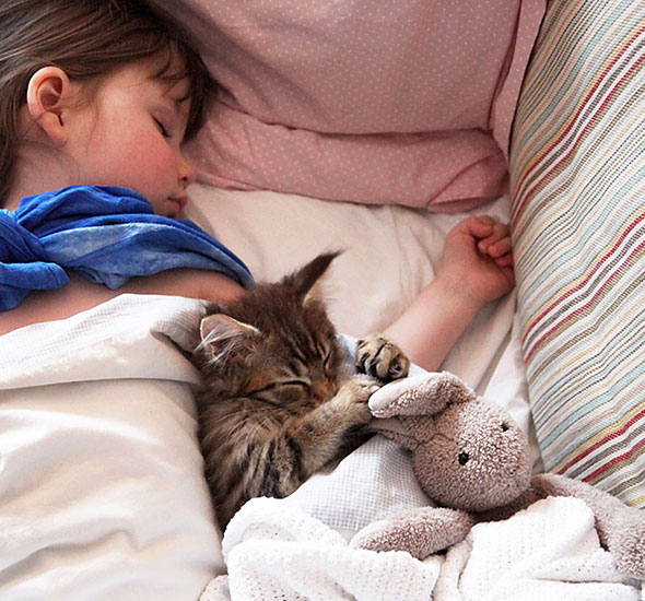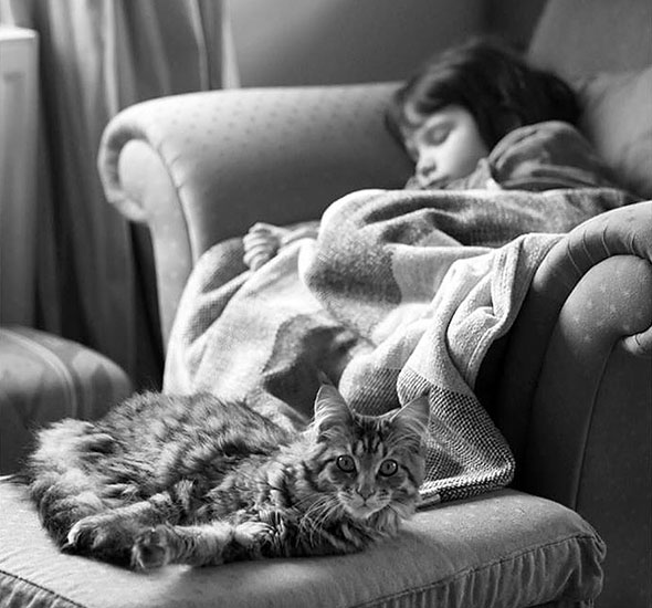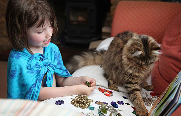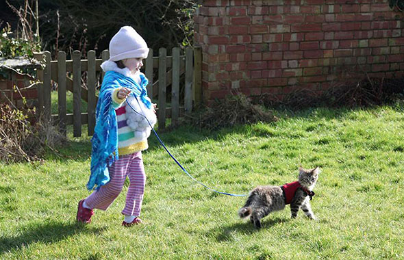 Η Thula μπορεί να μην είναι εκπαιδευμένη γάτα για να θεραπεύει τα άγχη παιδιών, όπως η Iris, αλλά η μητέρα την έχει εκπαιδεύσει κατάλληλα ώστε να μπορεί να μένει μαζί τους και να φορά ειδικό λουράκι για την ασφάλειά της.