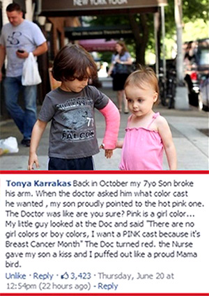 ...που ζήτησε ροζ γύψο για το σπασμένο του χέρι, επειδή τότε ήταν ο Μήνας κατά του Καρκίνου του Μαστού.