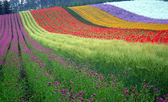 Η Κοιλάδα του Ουράνιου Τόξου στην Ιαπωνία απλώνεται σε έναν υπέροχο λόφο με τακτοποιημένες λωρίδες πολύχρωμων λουλουδιών. Θυμίζει κάτι από παραμύθια της Disney!