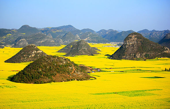 Τα αμφιθεατρικά λιβάδια δημιουργούν ένα απρόβλεπτο πολύχρωμο μωσαϊκό, στο οποίο μάλιστα παράγονται τόνοι ρυζιού για τα εκατομμύρια των Κινέζων.