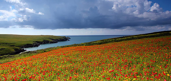 Τα κατακόκκινα λιβάδια από παπαρούνες που «κοιτάζουν» την Κέλτικη Θάλασσα φωτίζουν υπέροχα την κατά τα άλλα βροχερή Αγγλία.