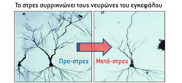 Η κορτιζόλη, η ορμόνη του στρες μπορεί να συρρικνώσει, να καθυστερήσει ή και να σκοτώσει τη δημιουργία καινούριων νευρώνων στο σημείο του εγκεφάλου που λέγεται "ιππόκαμπος". Το σημείο αυτό είναι υπεύθυνο για όλες τις χρήσιμες στη ζωή και τη δουλειά μας εγκεφαλικές διαδικασίες: την δυνατότητα μάθησης, τη μνήμης και την "αντίστασης" στο άγχος.