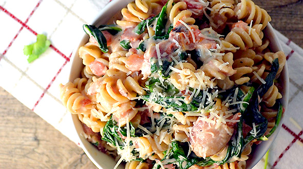 Ζυμαρικά βίδες με σπανάκι και μπέικον