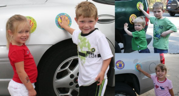 ...βάλτε ένα αυτοκόλλητο στο αυτοκίνητο και ζητήστε από τα παιδιά να το ακουμπούν πάντα.