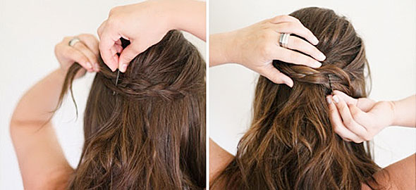 Χτένισμα-ωδή στη νοσταλγία. Αναδεικνύει τη ρομαντική σας πλευρά και, ταυτόχρονα, συγκρατεί τα μαλλιά σας πίσω. Αυτό το χτένισμα, έχει το προνόμιο να φαίνεται πολύπλοκο και προσεκτικά επιμελημένο, ενώ είναι απλούστατο και γρήγορο. Τα τσιμπιδάκια θα σταθεροποιήσουν τις δύο πλεξούδες σας στο πίσω μέρος του κεφαλιού.