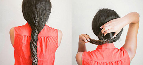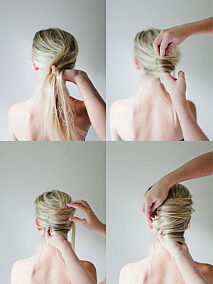 Το πιο εύκολο και ιδιαίτερο χτένισμα, για το οποίο θα χρειαστεί απλά να πλέξετε μία πολύ χαλαρή γαλλική πλεξούδα. Στη συνέχεια στρίψτε την άκρη της πλεξούδα προς τα μέσα, στο πάνω μέρος του αυχένα, και στερεώστε την με τσιμπιδάκια.