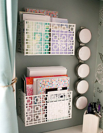Αντί να στοιβάζετε φακέλους και χαρτιά στα συρτάρια του γραφείου, μπορείτε σε κάποιον διπλανό τοίχο να κρεμάσετε διακοσμητικές θήκες, μέσα στις οποίες θα τοποθετήσετε χαρτικά που χρησιμοποιείτε πιο συχνά.