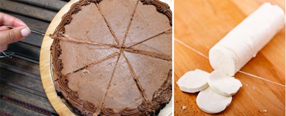 Αντί να παιδεύεστε με ασκήσεις γεωμετρίας όταν πρέπει να κόψετε ένα γλυκό, χρησιμοποιείστε οδοντικό νήμα. Αντικαταστήστε το μαχαίρι με οδοντικό νήμα για οποιαδήποτε μαλακή τροφή – από τούρτα, μέχρι μαλακό τυρί.
