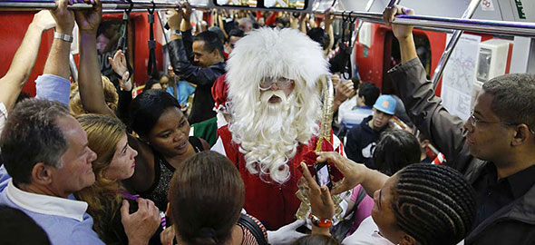 Ένας Άι-Βασίλης φέρνει το πνεύμα των Χριστουγέννων στο μετρό του Σάο Πάολο (Βραζιλία, 5/12/2014).