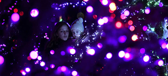 Μαμά και κόρη στο -διάσημο για τον στολισμό του- σπίτι με τα 1,5 εκατομμύριο φωτάκια σε επαρχία της Κροατίας (Κροατία, 19/12/2014).