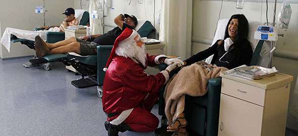Ο Άγιος Βασίλης επισκέπτεται καρκινοπαθείς κατά την διάρκεια χημειοθεραπείας σε νοσοκομείο του Σάο Πάολο (Βραζιλία, 19/12/2014).