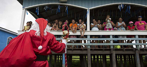 Ένας φιλάνθρωπος Άι Βασίλης πηγαίνει παιχνίδια σε πάμφτωχα παιδιά του Αμαζονίου (Αμαζόνιος, 20/12/2014).