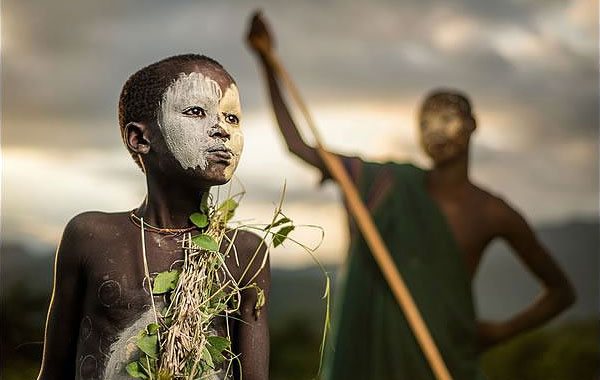 Αγόρι της νομαδικής φυλής Σούρι στην Αιθιοπία, με την παραδοσιακή περιβολή.