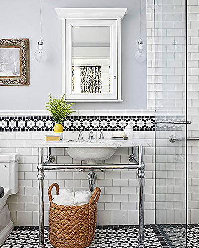 Αν σε κάποιον χώρο δεν έχετε ράφια, συρτάρια ή ντουλαπάκια, τοποθετήστε μερικά μεγάλα καλάθια –ιδανικά με χερούλια, για να μεταφέρονται εύκολα. Εκεί μπορείτε να βάλετε πετσέτες, παντόφλες ή αξεσουάρ.