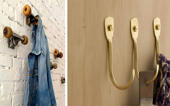 Με απλά τσιγκέλια κρεοπωλείου ή ακόμα και με ροδάκια από παλιά πατίνια δημιουργήστε κρέμαση σε τοίχο.