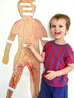 Ένας εξαιρετικός τρόπος για να μάθει το παιδί Νηπιαγωγείου ή Δημοτικού το κάθε μέρος του σώματός του, με την βοήθεια ενός χαρτονιού που θα κόψετε σε σχήμα σώματος και με μερικά ταμπελάκια –χαρτάκια, πάνω στα οποία θα γράψετε το όνομα του κάθε μέρους του σώματος. Με τον τρόπο αυτόν το παιδί θα μάθει να ονοματίζει σωστά το κάθε μέρος του σώματος.