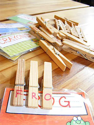Πανέξυπνο παιχνίδι για παιδιά που μαθαίνουν να γράφουν και να διαβάζουν. Τα παιδιά καλούνται να αντιστοιχήσουν με τα σωστά μανταλάκια τα γράμματα λέξεων που θα έχετε γράψει σε χαρτί. Αν θέλετε να κάνετε το παιχνίδι λίγο πιο δύσκολο μπορείτε να γράφετε λέξεις σε χαρτί παραλείποντας ένα ή δύο γράμματα, τα οποία θα πρέπει το παιδί να συμπληρώσει με το σωστό μανταλάκι.
