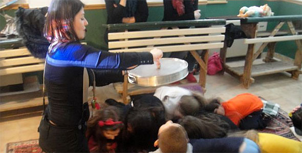 Παίζοντας θα ανακαλύψουμε τους κόσμους που ανοίγει μπροστά μας η σβούρα επιστρατεύοντας και τις πέντε μας αισθήσεις! Κίνηση, ήχοι, μουσικές, χρώματα, μορφές!