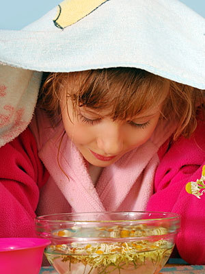 Μέσα στο ζεστό νερό του μπάνιου μπορείτε να ρίξετε 2-3 σταγόνες αιθέριο έλαιο ευκαλύπτου, ώστε να εισπνεύσει το παιδί τους θεραπευτικούς ατμούς και να ανασάνει καλύτερα. Εναλλακτικά, το παιδί μπορεί να κάνει εισπνοές πάνω από ένα λεκανάκι με ζεστό νερό και λίγο ευκάλυπτο, προκειμένου να "ανοίξει" η μυτούλα του.