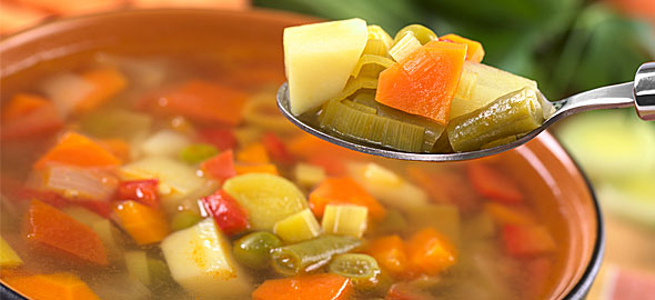 28. Σούπα με διάφορα λαχανικά, αρακά, ρύζι και πατάτα.