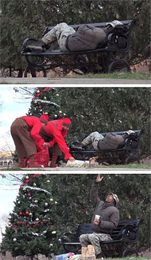 Τα ξωτικά των Χριστουγέννων εξέπληξαν άστεγους με τρόφιμα και δώρα.