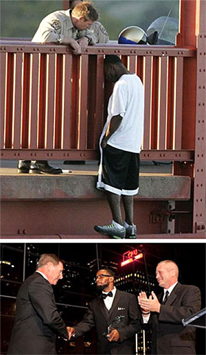 Αστυνομικός αποτρέπει έναν άνδρα από την αυτοκτονία. Οκτώ χρόνια μετά ο άνδρας -σήμερα πατέρας δύο παιδιών- δίνει στον αστυνομικό τιμητικό βραβείο από την Αμερικανική Ένωση κατά των Αυτοκτονιών.