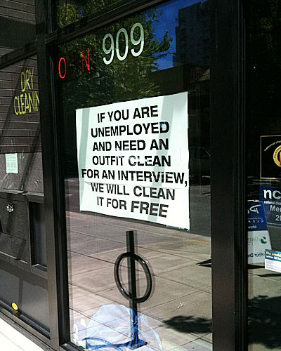 (αν είστε άνεργοι και χρειάζεστε ένα καθαρό κοστούμι για συνέντευξη, σας το καθαρίζουμε δωρεάν)