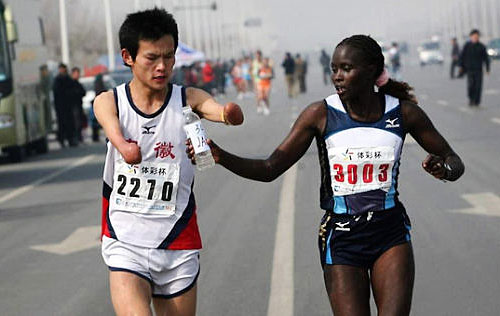 Η Jacquelin Kiplimo βοηθά ανάπηρο δρομέα να ολοκληρώσει τον Μαραθώνιο στην Ταιβάν, κοστίζοντάς της την Πρώτη Θέση Τερματισμού.