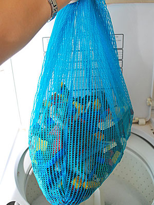 Βάλτε τα σε μία σακούλα από δίχτυ με λίγο απορρυπαντικό.