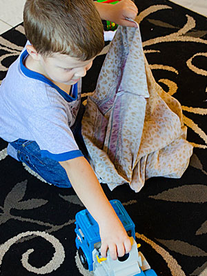 Πείτε στο παιδί ότι μπορεί να μεταφέρει στο σαλόνι μόνο όσα παιχνίδια χωρούν μέσα σε μια παλιά μαξιλαροθήκη. Στο τέλος του παιχνιδιού του το παιδί θα μπορεί εύκολα να μαζέψει ξανά τα παιχνίδια μέσα στη μαξιλαροθήκη και να τα επιστρέψει στο δωμάτιό του.