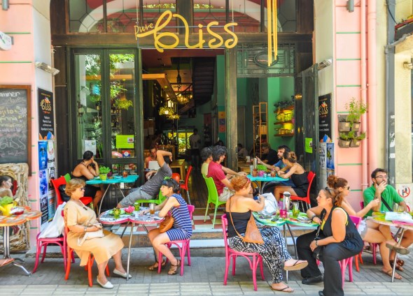 To Pure Bliss βρίσκεται στην καρδιά του ιστορικού τριγώνου -ήτοι στο εμπορικό κέντρο της Αθήνας. Το επόμενο Σάββατο που θα πάτε στο κέντρο για ψώνια με τα παιδιά, μπορείτε να απολαύσετε έναν... αντικαπνιστικό καφέ στην πλακόστρωτη οδό Ρόμβης. Το πολύχρωμο bliss θα σας φτιάξει τη διάθεση και η βόλτα στα γύρω στενά, που σφίζουν από κόσμο, μυρωδιές και πάσης φύσης εμπορεύματα, αποκλείεται να σας απογοητεύσει.
